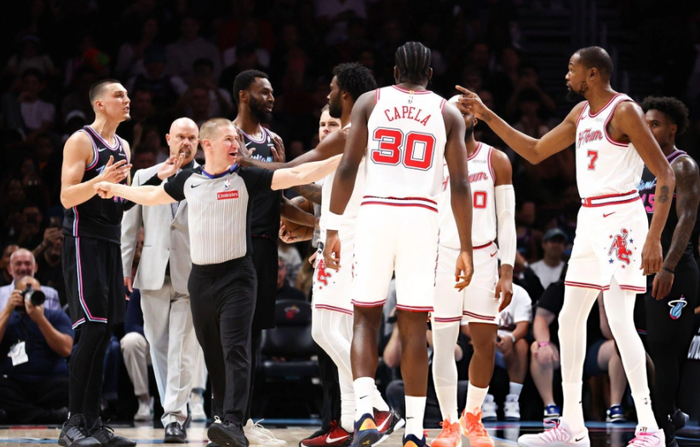 此时场上连续发生意外:先是杜兰特和希罗出现冲突,两人均吃到技犯。随后暂停期间,乌度卡和伊森爆发激烈言语冲突,伊森甚至想冲上去和乌度卡对峙,好在被身边工作人员拉开,乌度卡则非常不满。后半段杜兰特连续单打,哈克斯连续军训伊森和阿门,阿德巴约和德鲁史密斯续上三分球,第一节火箭28-32落后。进入第二节,哈克斯和阿德巴约带队火力全开,伊森明显不在状态,热火最多领先13分!霍勒迪三分球帮火箭止血,伊森的三分球,竟然直接投到申京手里,申京捡漏补篮。维金斯继续欺负申京,杰夫格林和阿门回应。