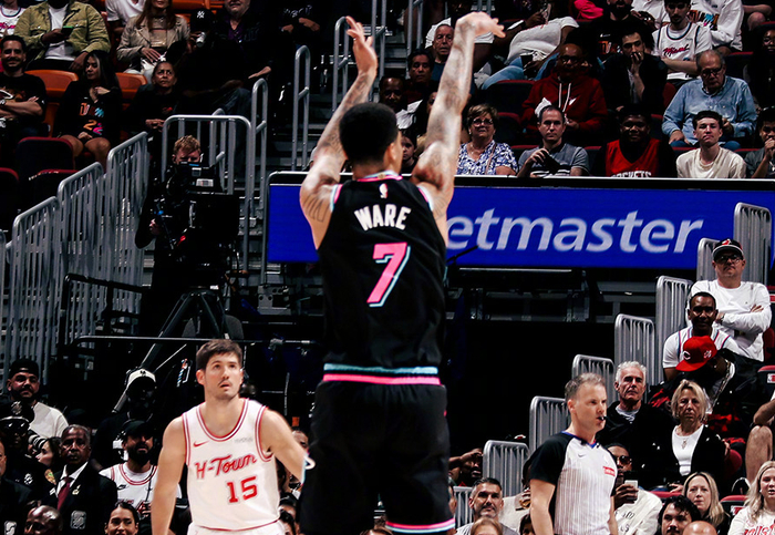 NBA常规赛继续进行,火箭客场挑战热火。此前火箭战绩为37胜21负,排名西部第三,最近一波三连胜,也让火箭慢慢坐稳西部第三位置。而热火此前战绩为31胜29负,排名东部第八,身后就是全联盟状态最火热的黄蜂,位置很不稳固。火箭最近三战连续击败爵士+国王+魔术,球队有两个收获,杜兰特+谢泼德+奥克吉+卡佩拉的衔接段阵容,一直都能赢分,谢泼德拉开空间手感极佳,过去三场比赛轰进17记三分球;此外数据包括场上呈现证明,阿门和申京,确实不太适合同时首发,严重拖空间。